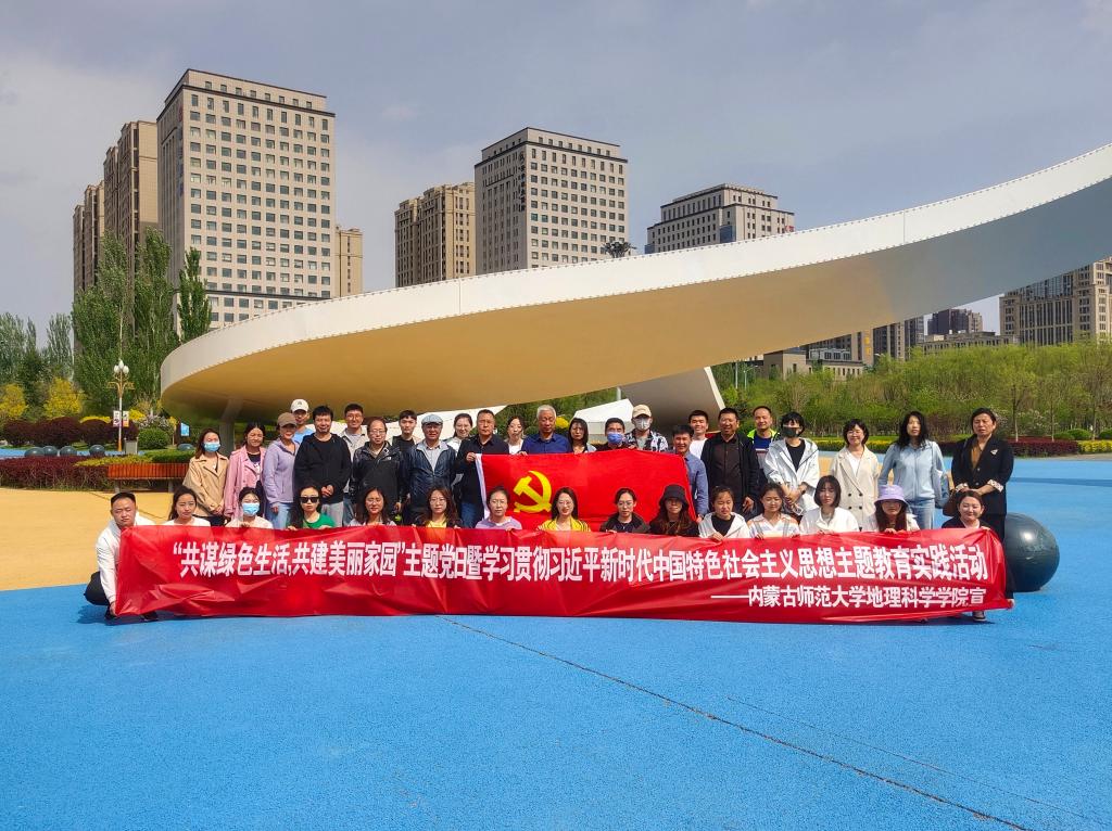 在开展学习贯彻习近平新时代中国特色社会主义思想主题教育之际,为深入贯彻习近平生态文明思想,丰富和活跃党员精神文化生活,加强党组织建设并促进师生间交流,5月11日下午,beat365正版唯一官方网站教工第一、第二党支部及研究生第一、第二党支部于草原丝绸之路文化主题公园联合开展了“共谋绿色生活,共建美丽家园”主题党日暨学习贯彻习近平新时代中国特色社会主义思想主题教育实践活动。beat365正版唯一官方网站党委书记张裕凤教授、教工第二党支部书记黄晓君及研究生第一党支部高苏日固嘎组织带领教职工党员及研究生党员参加本次活动。