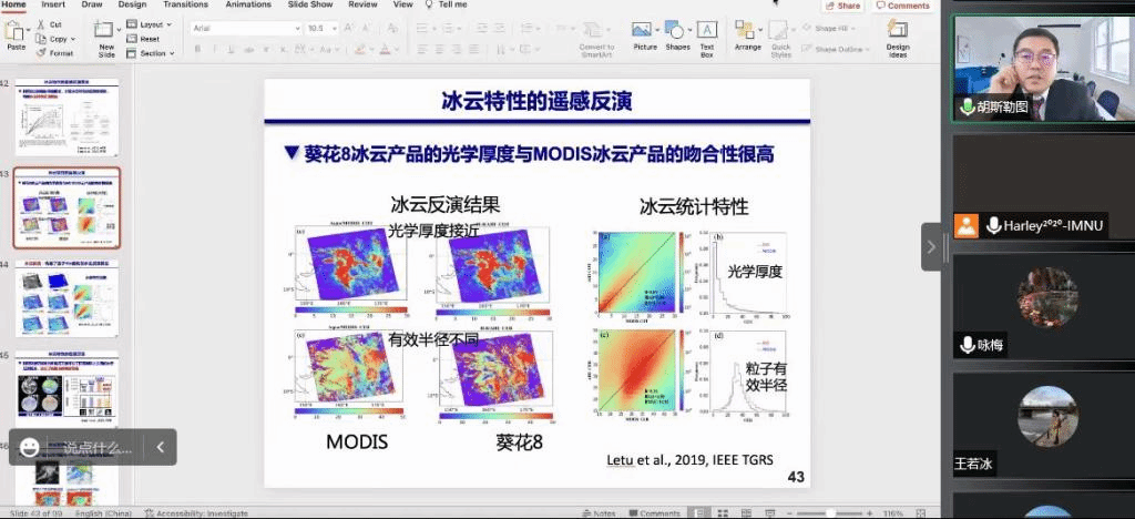 讲座中,胡斯勒图博士阐释了利用葵花8和云4新一静止卫星资料构建全天时云雾霾检测和相态识别新算法,进一步结合红外多通道资料构建云顶参数反演算法及产品;开发新的冰晶光散射模型,应用于冰云微物理特性反演和冰云辐射强迫的模拟中;利用上述云宏微观参数反演结果,结合辐射传输理论构建地表下行长短波辐射,光合有效辐射和紫外辐射通量估算算法,进一步结合地面观测资料和 CERES 卫星产品验证其精度,得到很好的计算精度等研究内容,为beat365师生打开学术新视野,得到了积极好评。