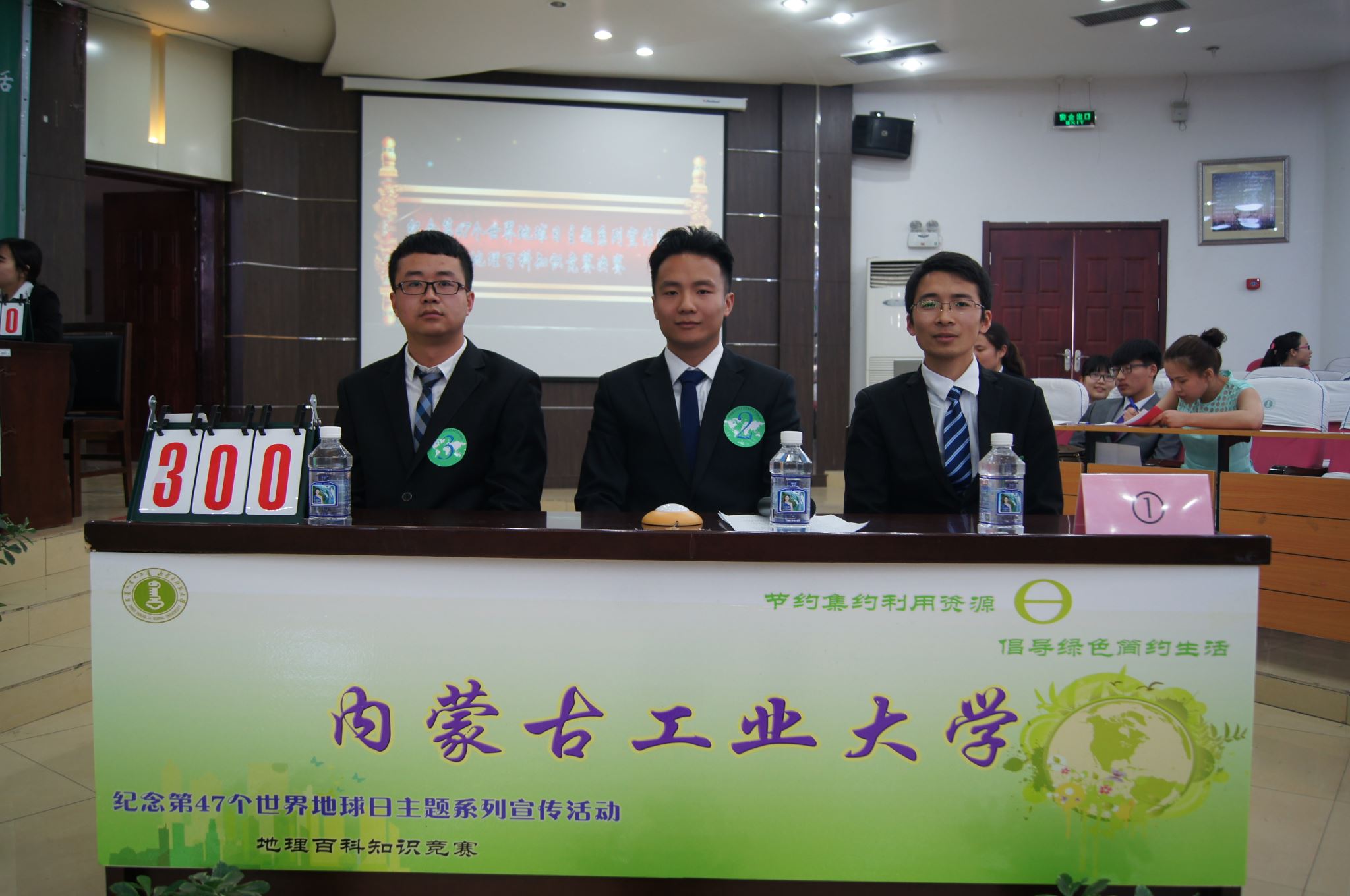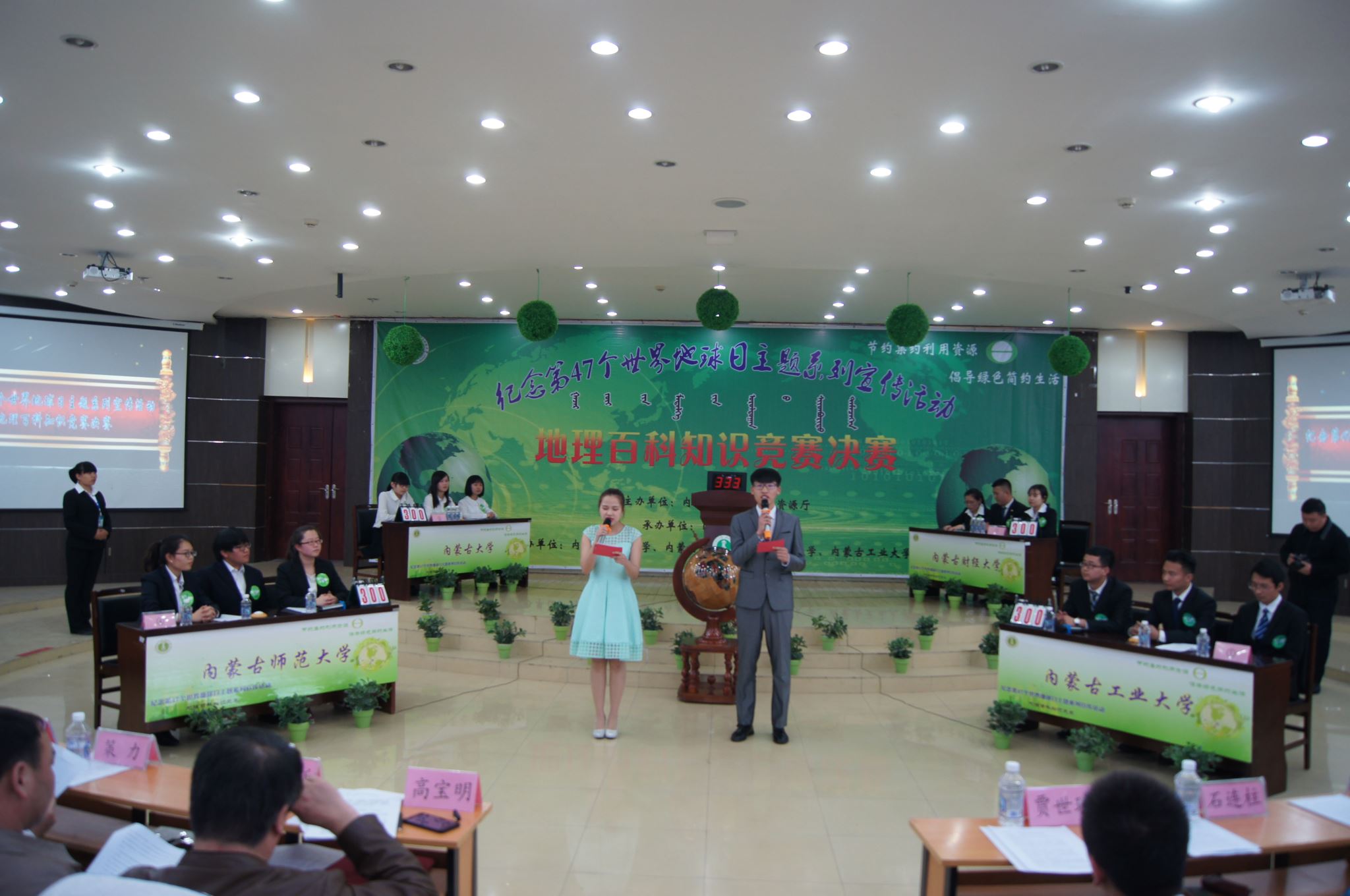 4月20日下午,beat365正版唯一官方网站联合自治区三所高校在内蒙古师范大学盛乐校区图书馆一楼报告厅举办“地理百科知识竞赛决赛”。校团委副书记贾世琦、学生处副处长石连柱以及国土资源厅有关领导参加了本次活动。