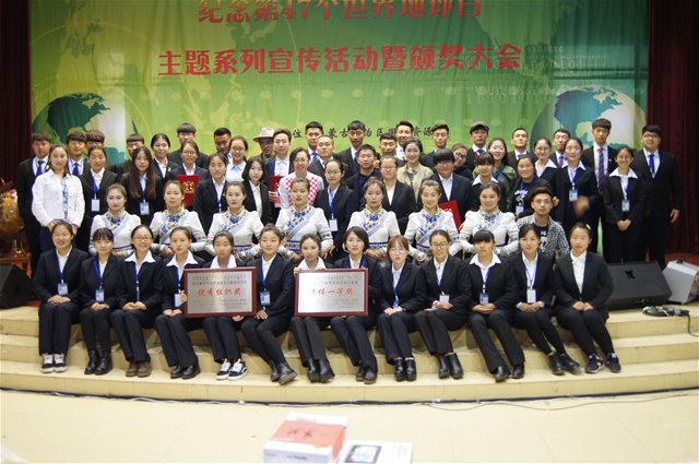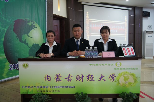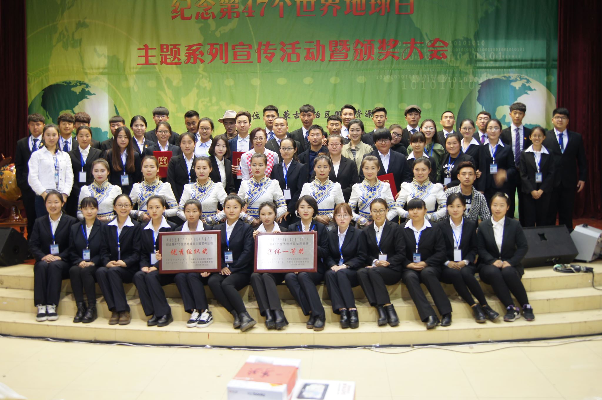 4月22日上午, “纪念第47个世界地球日主题系列宣传活动暨颁奖大会”在内蒙古师范大学盛乐校区举行。内蒙古师范大学副校长刘九万、内蒙古地质调查院副院长曹志忠、内蒙古地质调查院党委副书记徐宗培、学生处处长斯钦、学生处副处长石连柱、beat365正版唯一官方网站院长海春兴、beat365正版唯一官方网站副院长张裕凤、beat365正版唯一官方网站党总支副书记李雨薇、内蒙古大学生命科学学院党总支书记张慧荣、内蒙古大学环境与资源学院党总支书记李笑春、内蒙古工业大学研究生工作部学生管理办公室主任唐正魁、内蒙古财经大学资源与环境经济学院党总支书记郑之新等领导和嘉宾莅临本校参加活动。本次活动中内蒙古师范大学学生代表孙宇雯宣读了本次活动的倡议书,倡导广大同学积极了解生态文明,学习国土资源科学知识,节约集约利用资源,倡导绿色简约生活。整场演讲比赛在来自四个高校八位学生代表的精彩演讲中达到高潮,演讲结束后刘新生同志为本次演讲比赛做了精彩点评,随后进行颁奖环节,内蒙古师范大学荣获“地理百科知识竞赛”的冠军,荣获第二名的是内蒙古工业大学,第三名分别由内蒙古财经大学与内蒙古大学摘得,在演讲比赛中内蒙古师范大学赵延同学获得第一名。随着颁奖环节的结束整场活动正式结束,第47个世界地球日主题系列活动完美落幕。在演讲比赛开始前在图书馆二楼,通过悬挂宣传横幅、展示专题展板、组织签名、发放宣传资料和环保袋等多种方式对第47个地球日进行了积极的宣传。