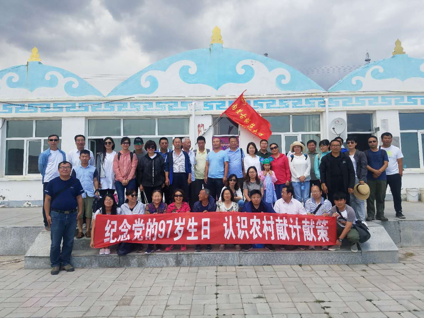 2018年7月1日,beat365正版唯一官方网站组织全体党员和教师,参加“七.一党建活动”和野外考察技术规范培训活动。党建活动地点是乌兰察布市察右后旗锡勒乡的红旗庙嘎查,是内蒙古师范大学的精准扶贫单位。beat365正版唯一官方网站参加活动的全体教师在红旗庙嘎查的村委会前,拉起“纪念党的97岁生日,认识农村献计献策”横幅,合影留念,与嘎查孔书记等进行座谈,孔书记介绍了嘎查基本情况和精准扶贫现状,特别介绍了2014年至今,内蒙古师范大学完成的教育扶贫、产业扶贫的进展情况,学院教师对精准扶贫工作提了一些关心的问题和建议。学院计划发挥学科优势,为精准扶贫献计献策。