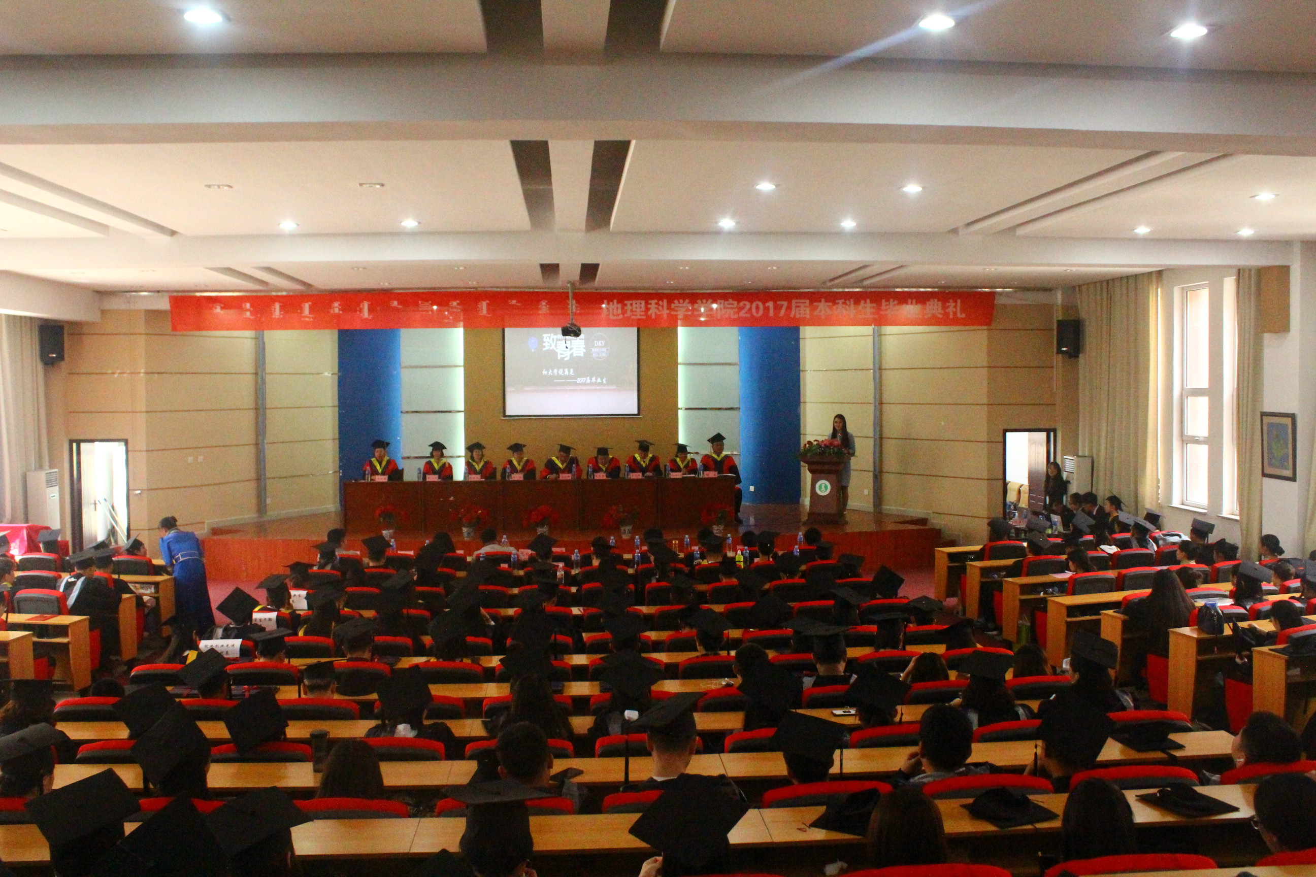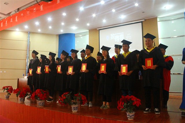 又是一年毕业季、又是一年丰收时,5月12日上午,beat365正版唯一官方网站2017届本科生毕业典礼在盛乐校区科技楼报告厅隆重举行。内蒙古师范大学党委副书记、纪委书记高云峰研究员,内蒙古师范大学学生工作处处长斯钦研究员,内蒙古师范大学就业指导处副处长王志强教授,beat365正版唯一官方网站院长包玉海教授,beat365正版唯一官方网站党总支副书记、副院长张裕凤教授以及学院部分教师代表、毕业班全体班主任和毕业生参加了典礼。