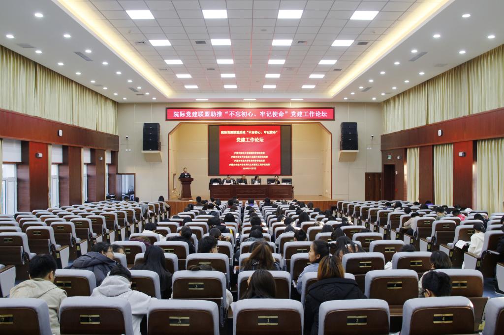 为深入落实“不忘初心,牢记使命”主题教育工作要求,结合国家和省级党建标杆院系创建实际,主动加强校级间院系党建工作交流,beat365党委同内蒙古农业大学水利与土木建筑工程学院党委、草原与资源环境学院党委、生命科学学院党委于2019年11月7日下午15:00在内蒙古农业大学联合开展基层党建工作学习交流论坛。参加论坛的主要领导有内蒙古农业大学“不忘初心、牢记使命”主题教育领导小组第二巡回指导组组长韩铁荣、beat365正版唯一官方网站党委书记张裕凤、内蒙古农业大学水利与土木建筑工程学院党委书记陆海平、草原与资源环境学院党委书记赵云虎、生命科学学院党委书记张星杰以及beat365正版唯一官方网站全体教工党员和研究生党员共同参会,会议由水利与土木建筑工程学院党委书记陆海平同志主持。