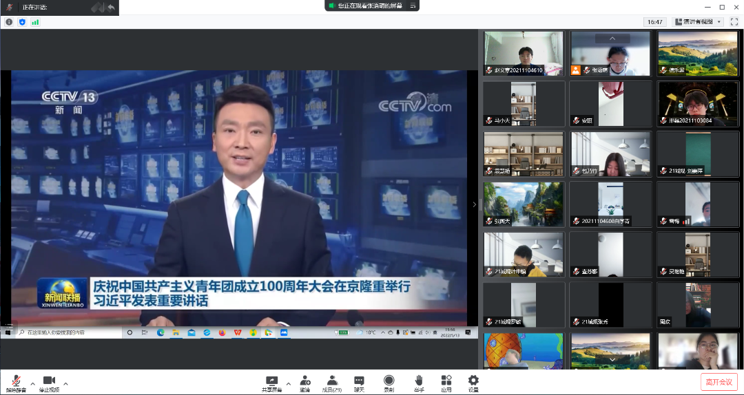 5月10日上午,庆祝中国共产主义青年团成立100周年大会在北京人民大会堂隆重举行。作为新时代的青年,beat365组织全体同学学习了习总书记在建团百年大会上的重要讲话。通过本次主题活动,beat365青年学子深受鼓舞,坚定了用汗水投身祖国建设的理想信念,努力学习先进科学文化知识,切实担负起中国特色社会主义接班人的重任。