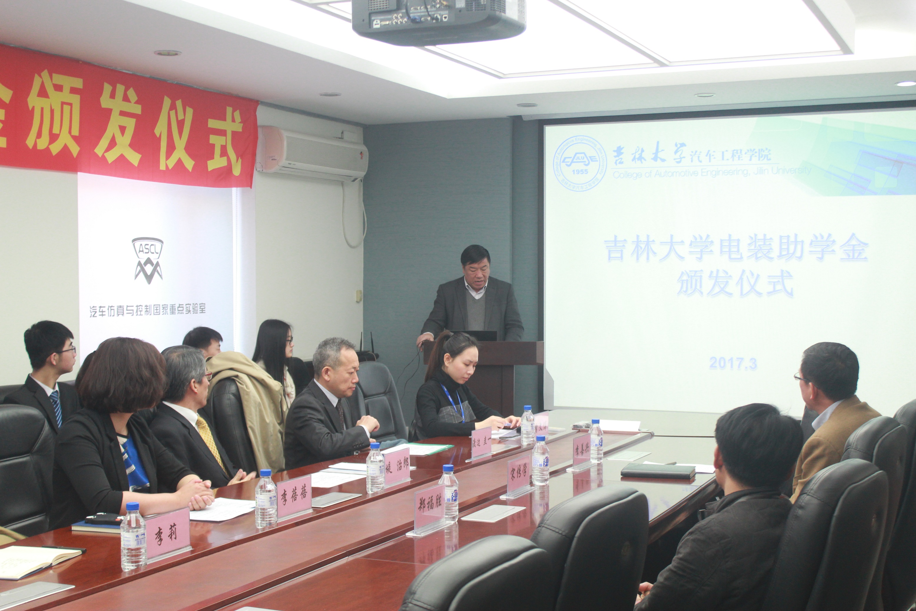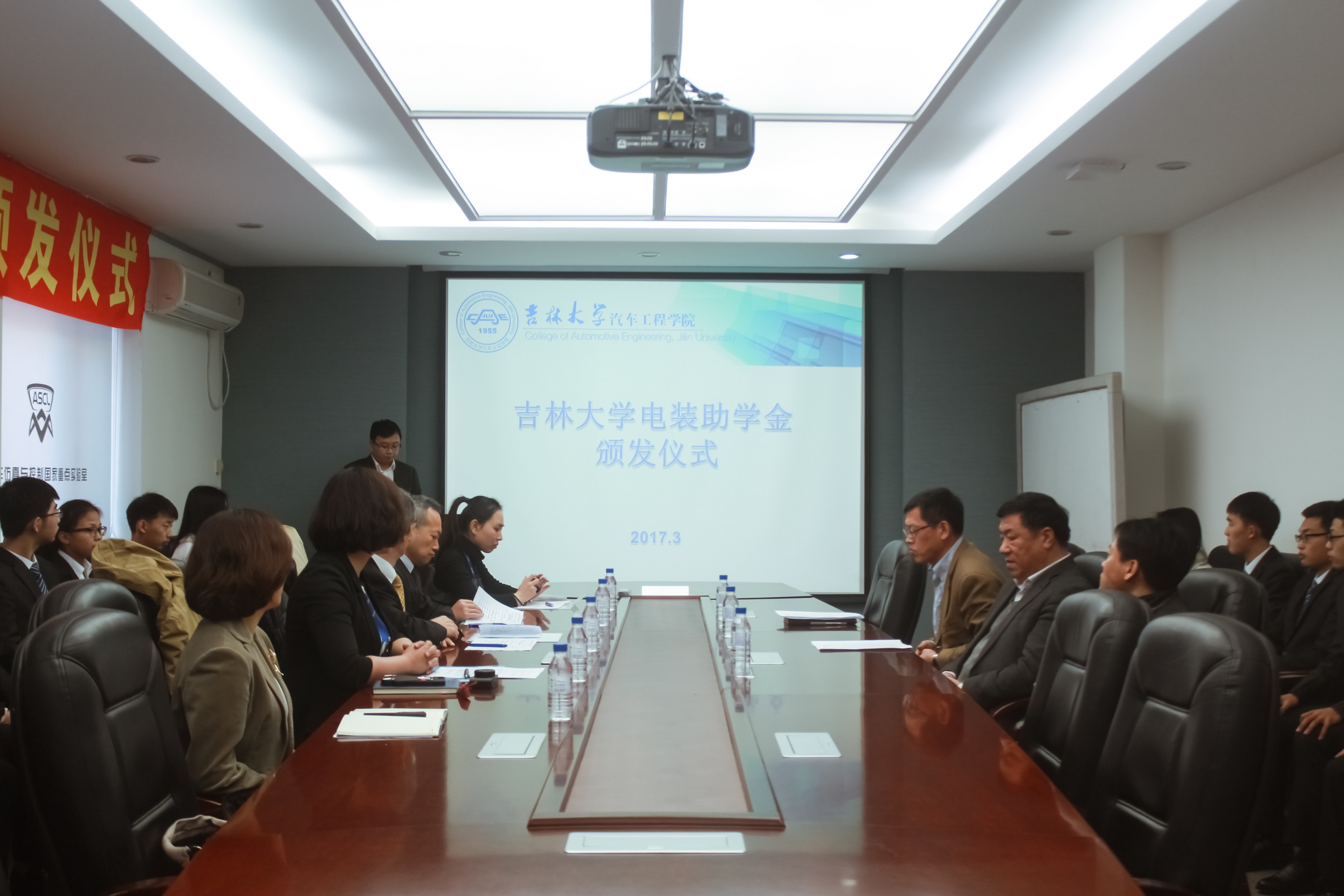beat365正版唯一官方网站于3月23日上午,在学院会议室举行2017年电装集团助学金颁发仪式。电装(中国)投资有限公司行政管理本部长堤治郎、长春分公司总经理渡边圭一,beat365正版唯一官方网站院长宋传学、党委书记李善兴,机械科学与工程学院党委副书记兼副院长郑福胜等领导嘉宾出席了本次仪式。