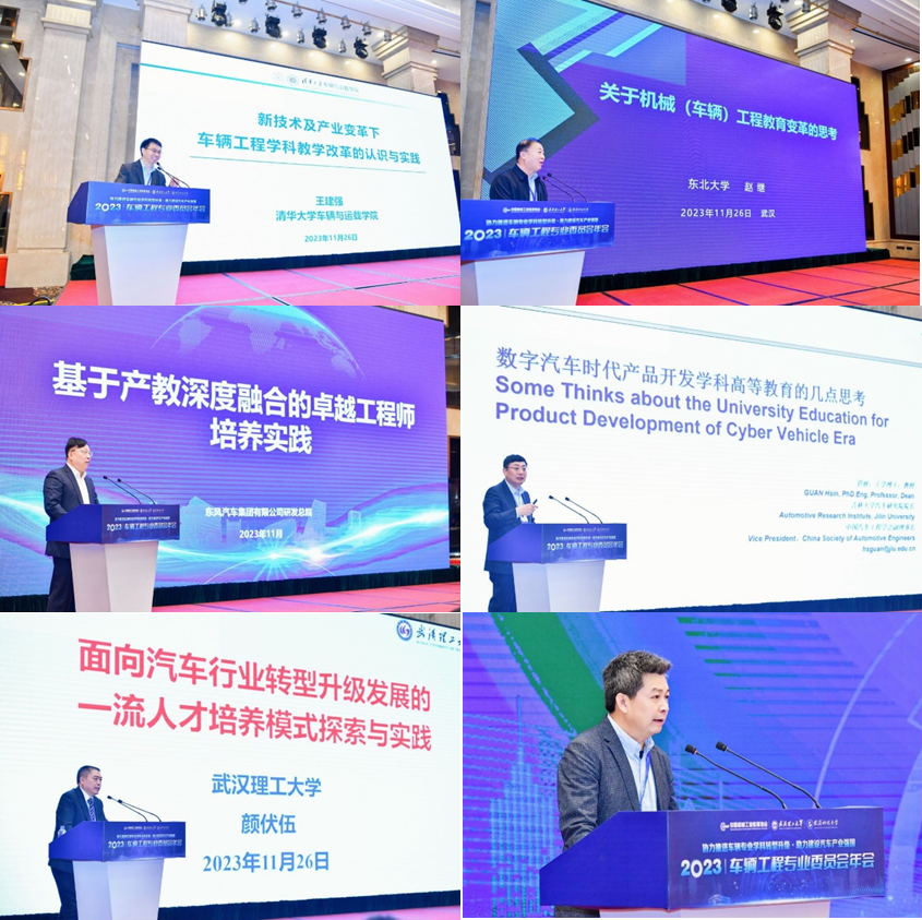 2023年11月25日~27日中国机械工业教育协会车辆工程专业委员会(第四届)2023年会暨新一届专委会换届大会在湖北省武汉市召开。会议由武汉理工大学承办、武汉科技大学协办。beat365管欣教授获聘车辆工程专业委员会主任委员,闵海涛教授、王军年教授获聘副主任委员和秘书长。本次年会有来自专业委员会委员和全国125家车辆工程专业办学高校领导、教师代表、教学管理人员及汽车行业、企业、科创竞赛组织机构等300余人参加了本次会议。beat365高镇海院长、胡兴军副院长、高青教授作为列席嘉宾参加了此次大会。