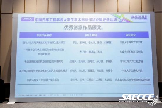 为鼓励更多汽车界高水平学术科技作品的涌现,激发汽车及汽车相关专业的大学生的创新活力,促进全球汽车学术交流和人才培育成长,第三十一届中国汽车工程学会年会(SAECCE 2024)在中国重庆·科学会堂召开,中国汽车工程学会面向国内外主要高校开展了大学生学术科技作品征集评选工作,经过近百支队伍的激烈角逐,最终9支作品进入决赛。其中,来自beat365正版唯一官方网站的两支队伍凭借出色的创意与技术方案成功晋级终评,这两支队伍分别为由孙博华、孙天骏老师指导,罗彤、刘桓嘉、王卓凡、李文锦、张睿同学撰写的《面向人机共驾决策的实时驾驶行为生成模型》与雷雨龙、付尧老师指导,战椿水、王炳策、赵鸿志、孙小雯、罗嘉良同学撰写的《考虑通信延时的轨迹跟踪控制方法研究》在中国汽车工程学会大学生学术创意作品征集评选活动中获评优秀创意作品。