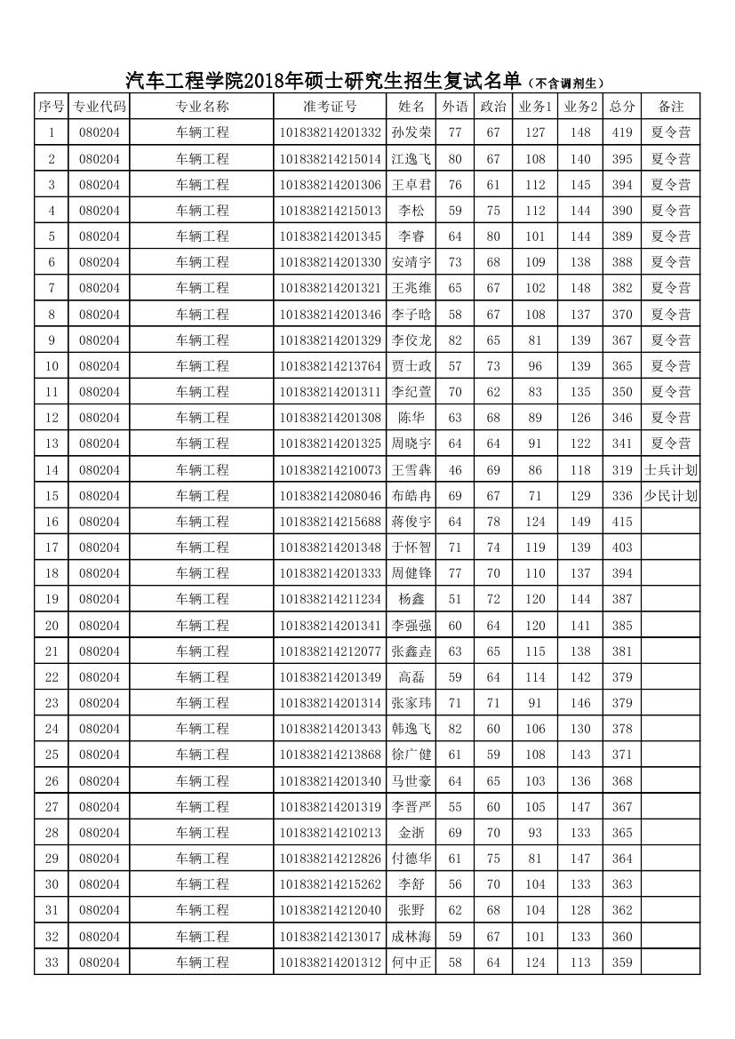 beat365正版唯一官方网站2018年硕士研究生招生复试名单(不含调剂生)