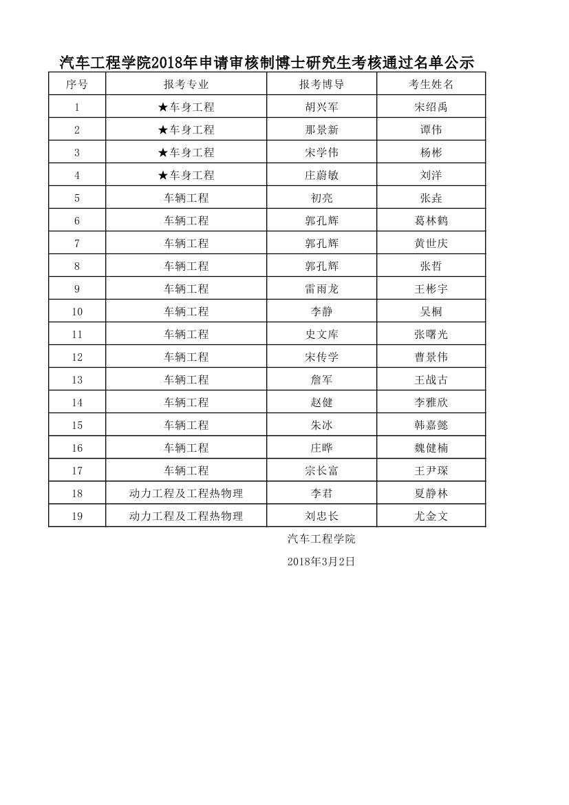 beat365正版唯一官方网站2018年申请审核制博士研究生考核通过名单公示