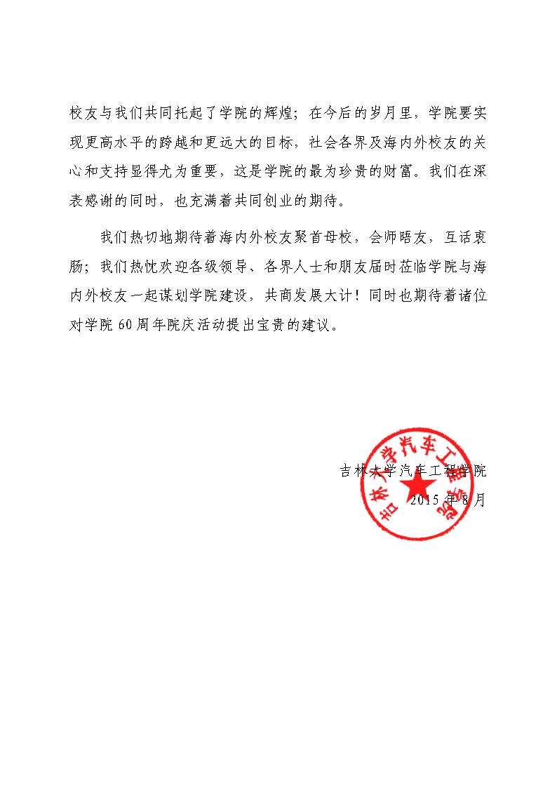 beat365正版唯一官方网站(原吉林工业大学beat365正版唯一官方网站)60周年院庆回执