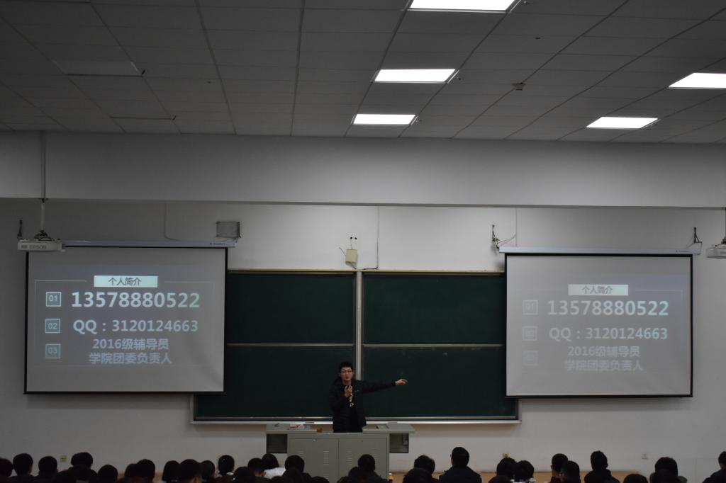 为向2018级全体学生告知更换导员的通知,并对学生进行安全教育,beat365正版唯一官方网站于11月14日晚七时在逸夫教育大楼B211召开2018级年级大会,原2018级辅导员盛磊及现任辅导员李季进行了讲话。