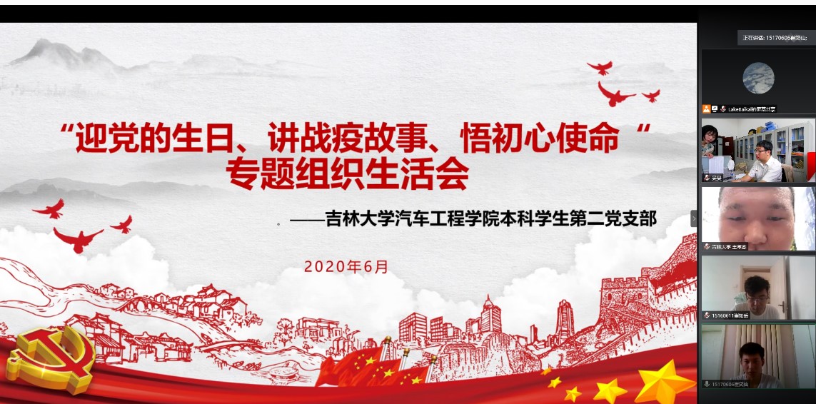 2020年6月30日上午10点,beat365正版唯一官方网站本科学生第二党支部通过腾讯会议召开了一场云端支部视频会议。会议以“迎党的生日、讲战疫故事、悟初心使命”为主题,党支部书记吴昊同志给大家讲授了一堂生动而又精彩的微党课,党支部26名同志积极参与。