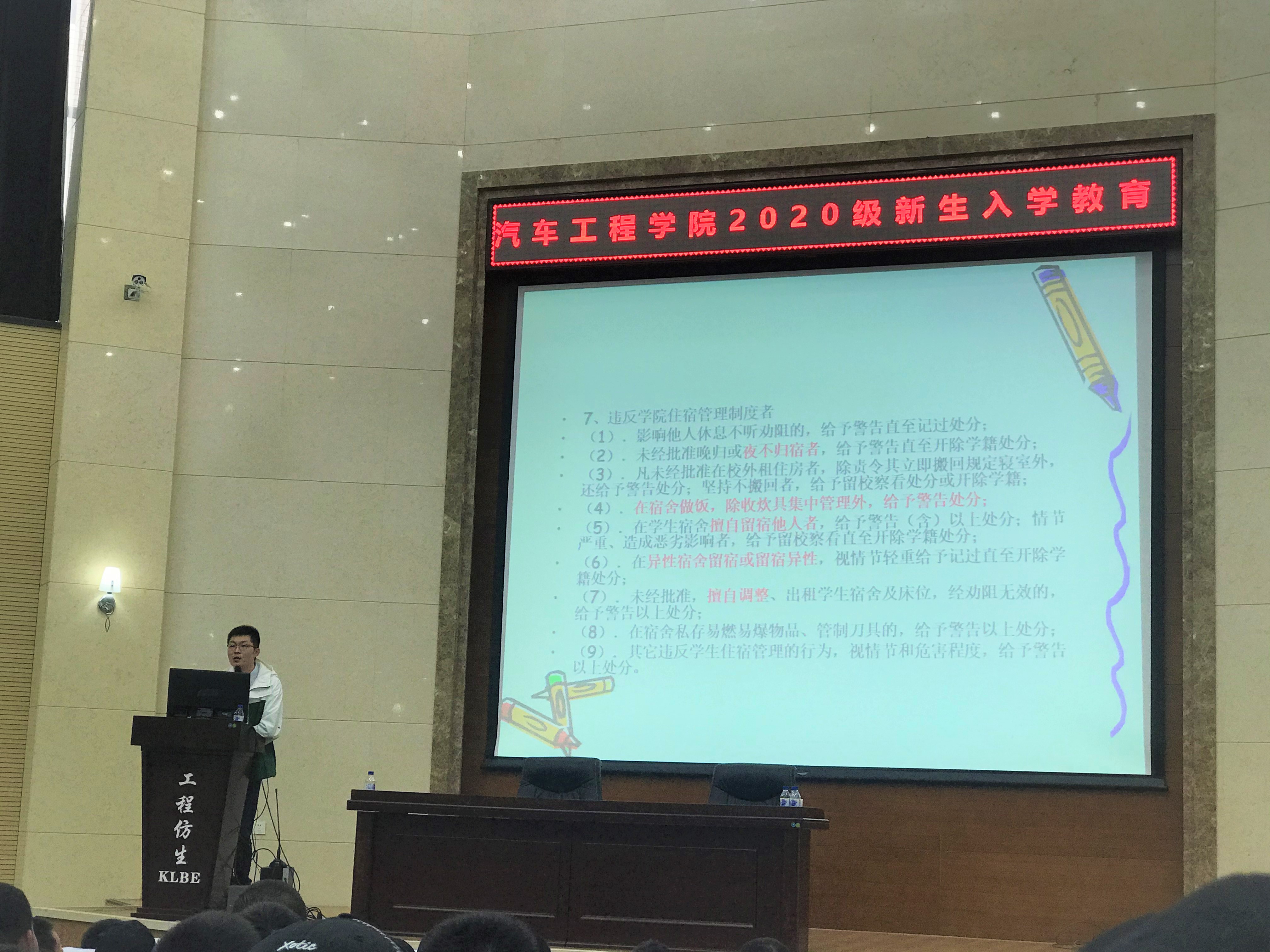 为帮助新同学了解大学校园生活,10月8日下午3点,beat365正版唯一官方网站于仿生报告厅召开了2020级新生校规校纪教育大会。2020级辅导员李季老师担任主讲人。