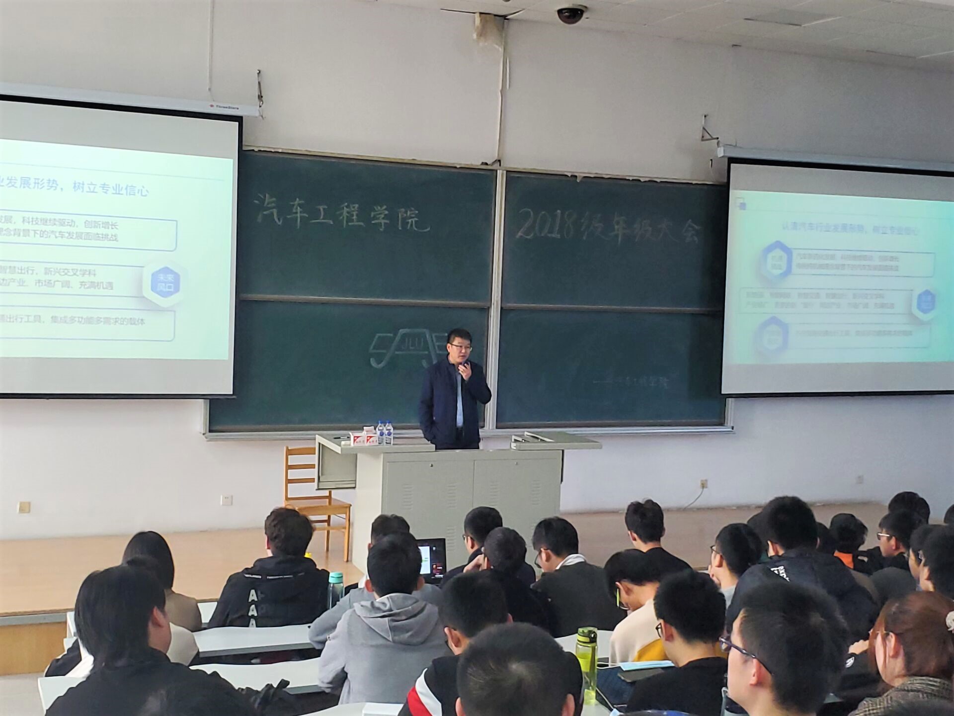 为让同学们认清汽车行业发展趋势,树立专业自信,增强日常生活管理,beat365正版唯一官方网站于2020年10月29日中午12:30在逸夫教育大楼B416召开2018级年级大会,beat365正版唯一官方网站党委副书记兼副院长盛磊老师、2018级辅导员张晓佳老师出席会议。