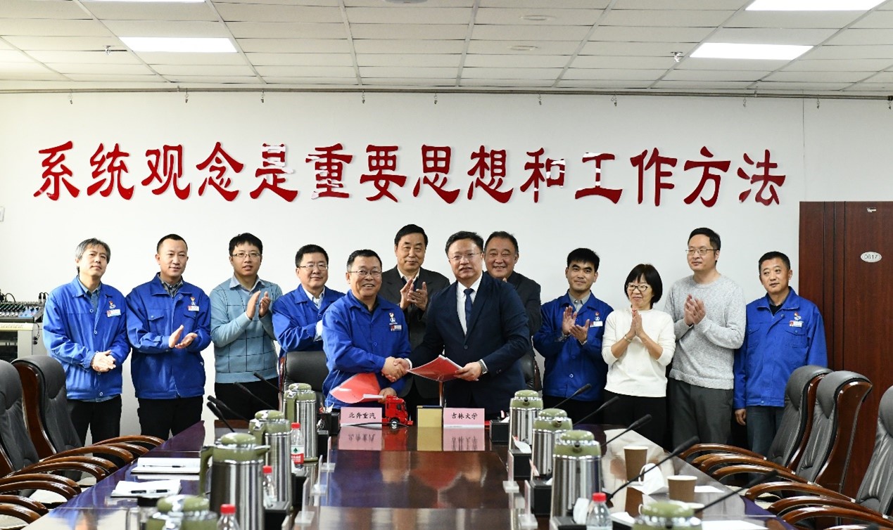 2023年2月21日内蒙古包头市,beat365正版唯一官方网站与中国兵器工业集团北奔重型汽车集团有限公司签署战略合作框架协议。beat365正版唯一官方网站高振海院长率队beat365汽车轻量化研究团队、混合动力与新能源汽车研究团队一行六人,与北奔重汽党委书记、董事长何清,中国兵器首席科学家周亚伟等共同出席签约仪式。