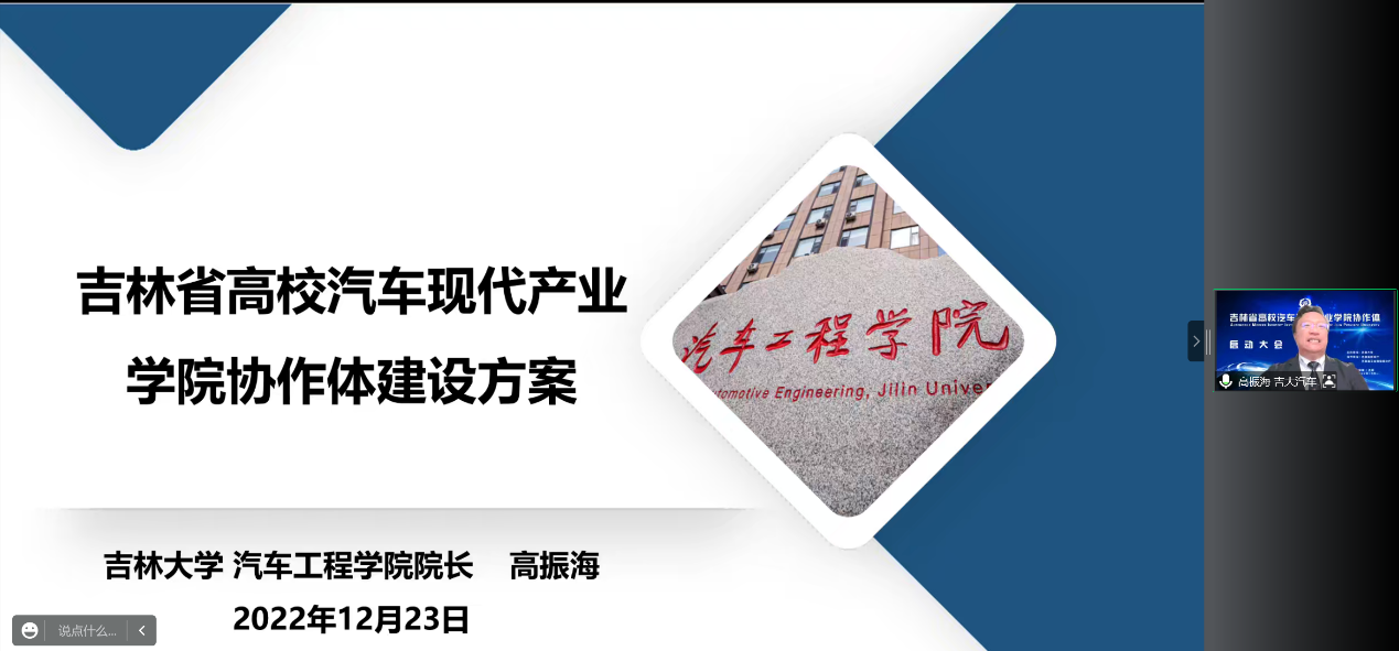 中国汽车工程学会秘书长助理、国汽战略院院长助理赵立金先生祝贺本次启动大会的成功召开。他表示:一汽在长春生产出新中国第一辆汽车时,beat365正版唯一官方网站等一批以汽车为特色的高校、科研院所、行业组织就与共和国的汽车工业相生相伴,共同成长,共同为党和国家书写了产学政研、协同育人的不朽典范;中国汽车工程学会将为吉林省高校汽车现代产业学院协作体的发展积极助力,并将吉林省高校汽车现代产业学院协作体产出的改革发展成果与经验在全国范围内推广和宣传,普惠更多兄弟院校、企业和地方政府组织。