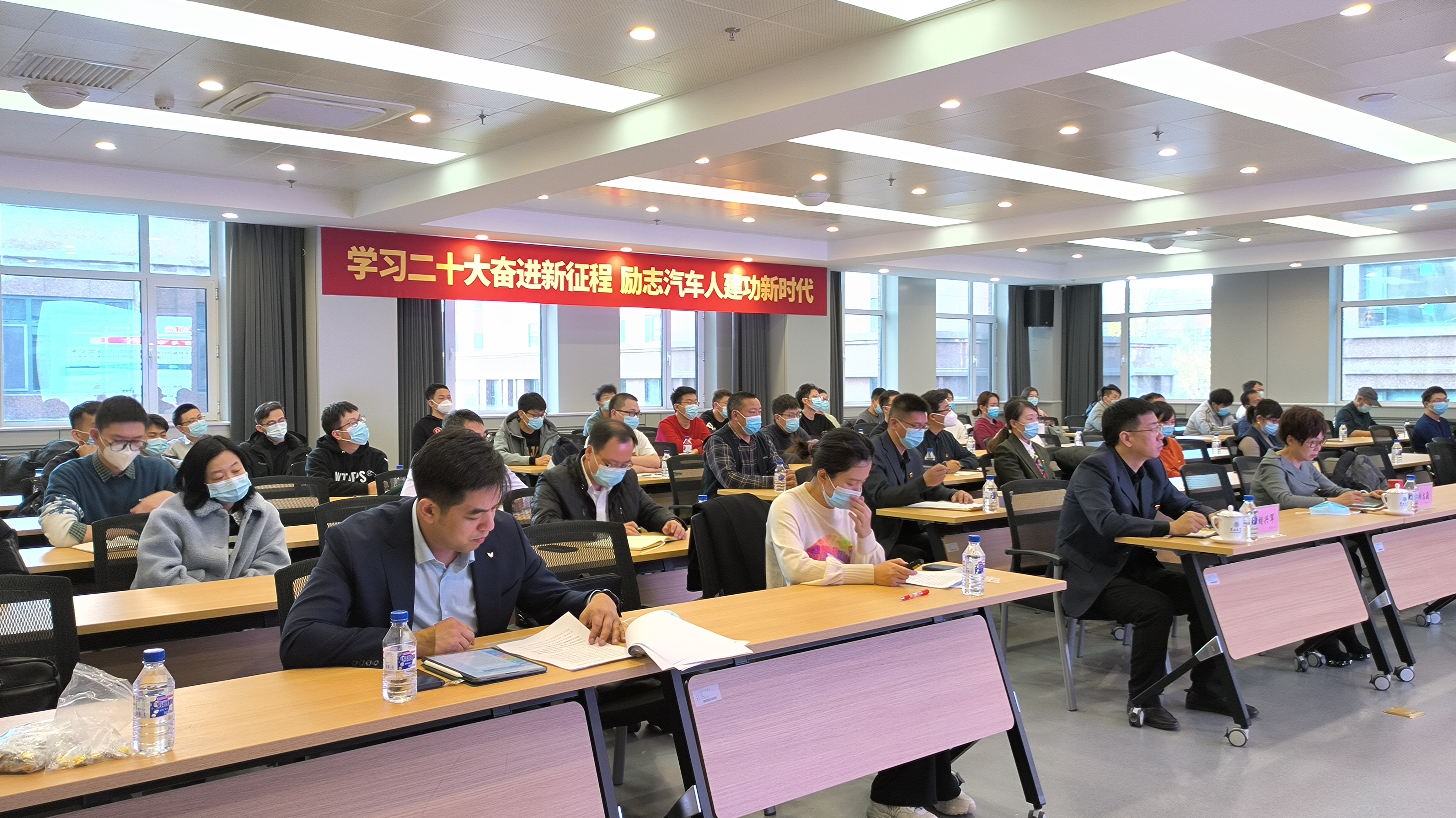 为认真贯彻落实习近平总书记关于深入学习宣传贯彻党的二十大精神的重要指示精神,提升广大师生的思想政治素养,以党的二十大精神武装头脑、指导实践、推动工作。11月16日,学校党委常委、常务副校长以“为全面建设社会主义现代化国家全面推进中华民族伟大复兴而团结奋斗”为题,就学习宣传党的二十大精神为beat365正版唯一官方网站师生讲授专题党课。beat365正版唯一官方网站党委副书记胡忠巍、副院长胡兴军以及车身工程教工支部教师、研究生学生党员代表参加了会议。会议由beat365正版唯一官方网站党委书记黄忠华主持。